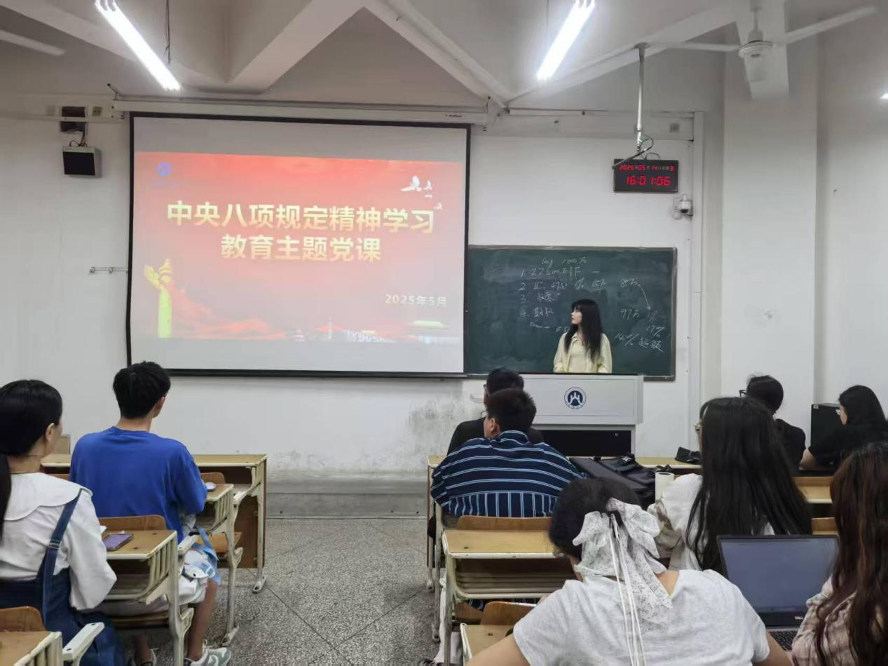 为深入贯彻中央八项规定精神学习教育,持之以恒深化作风建设,全面提升学生党员的理论素养。5月14日,色情网站 研究生第三党支部“青语新声”研究生理论学习宣讲团以“中央八项规定精神学习教育”为主题,在金融楼116室开展理论宣讲活动,研究生全体党员、2025年发展对象和积极分子参加。