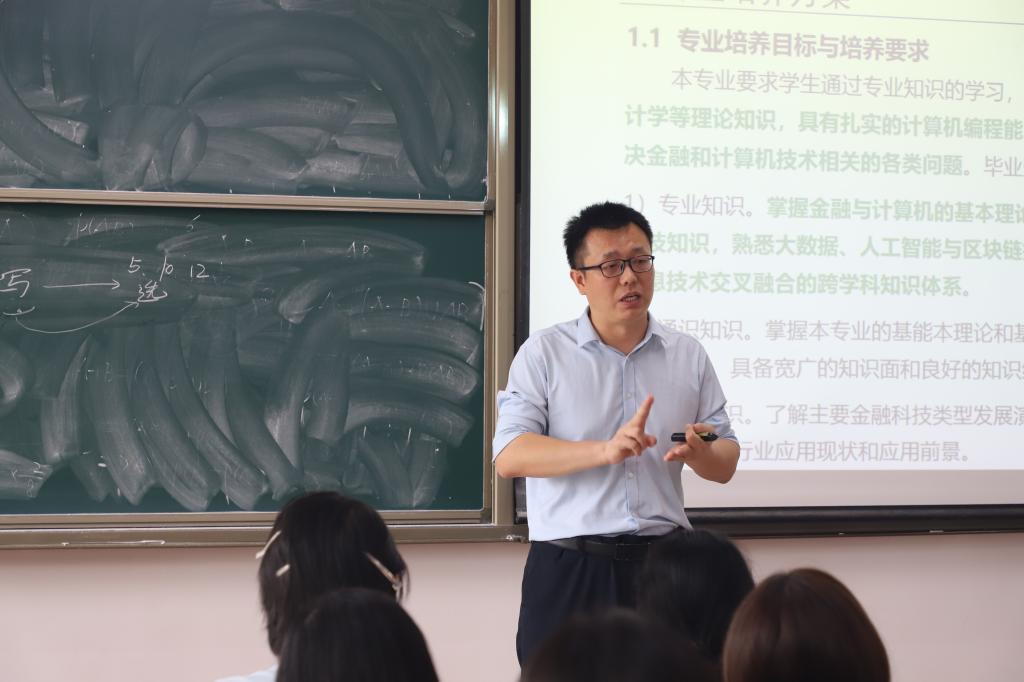 在开展专业教育时,梁巧慧、毕泗锋、陈彬彬、张超四位老师分别解读金融学、金融工程、金融科技、投资学专业的培养方案、课程体系与就业前景,让新生们清晰认识专业优势,坚定学习信心。