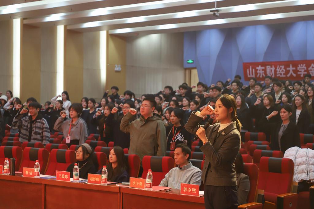 第十四届学生会副主席孙宇宁带领全体学生组织成员庄严宣誓,表达了恪守职责、服务同学、奉献学院的坚定决心。