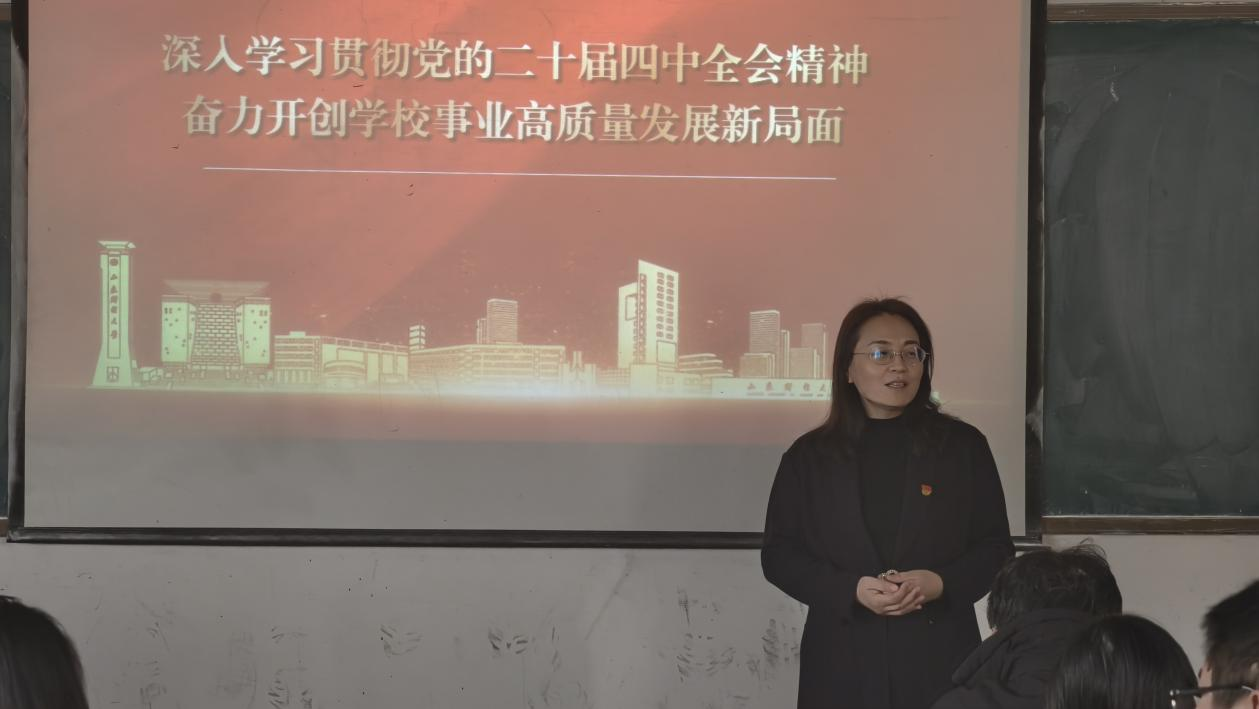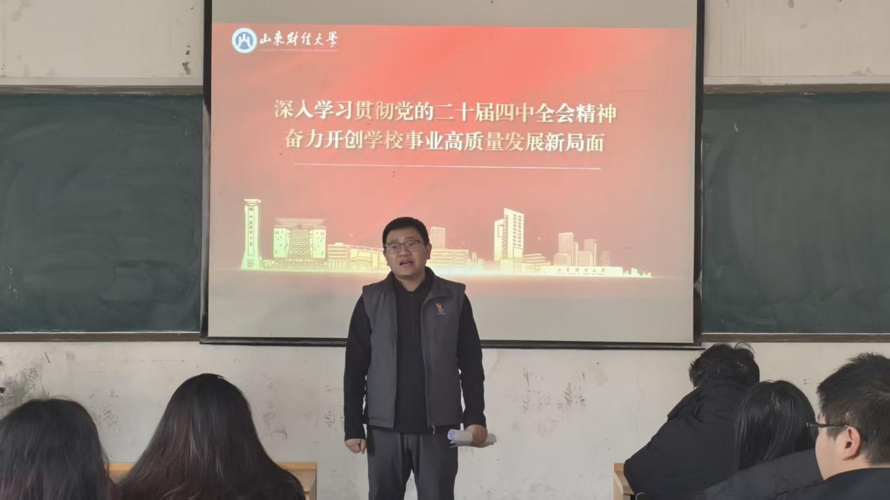 “青语新声”研究生宣讲团成员、研究生第三党支部书记祁媛以《深入学习宣传贯彻党的二十届四中全会精神》为题开展宣讲。她从党的二十届四中全会召开的重大意义切入,系统解读了“十五五”时期在基本实现社会主义现代化进程中的关键地位,深入阐释了“十五五”时期经济社会发展的指导方针、主要目标与战略任务,详细介绍了山东在“十四五”期间取得的重大发展成就,并结合学校高质量发展要求,鼓励全体预备党员将个人理想融入国家发展大局,在学术研究中聚焦实际问题,在社会实践中锤炼过硬本领,以青春之力助推中国式现代化建设。
