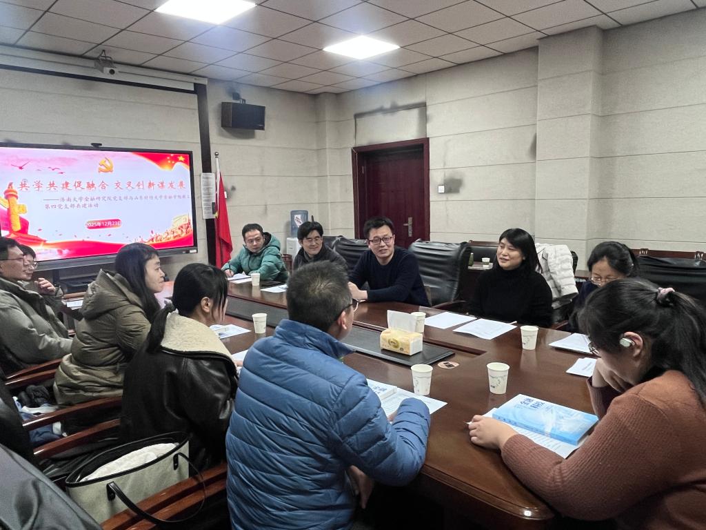 为深入学习贯彻党的二十届四中全会精神,以高质量党建引领学科发展与人才培养提质增效。12月23日下午,色情网站 教工第四党支部特与济南大学金融研究院党支部联合开展本次党建共建活动,活动地点在色情网站 会议室314进行,色情网站 教工第四党支部部分党员代表和济南大学金融研究院党支部部分党员参加座谈会。