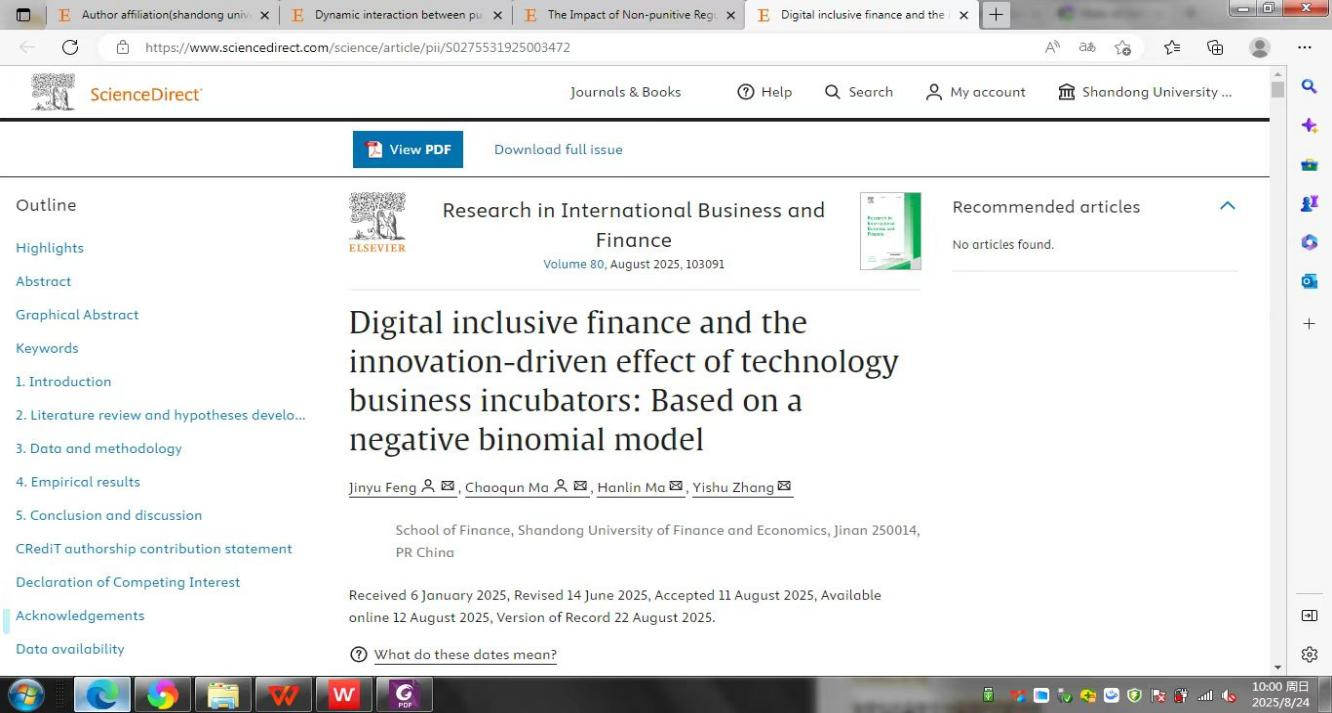 色情网站 冯金余教授作为第一作者兼通讯作者与其博士硕士研究生张亦姝、马超群及马瀚霖合作撰写的论文《Digital inclusive ffnance and the innovation-driven effect of technology business incubators: Based on a negative binomial model》,于2025年8月在期刊《Research in International Business and Finance》在线发表。该期刊最新影响因子为6.3,属我校A1类期刊。