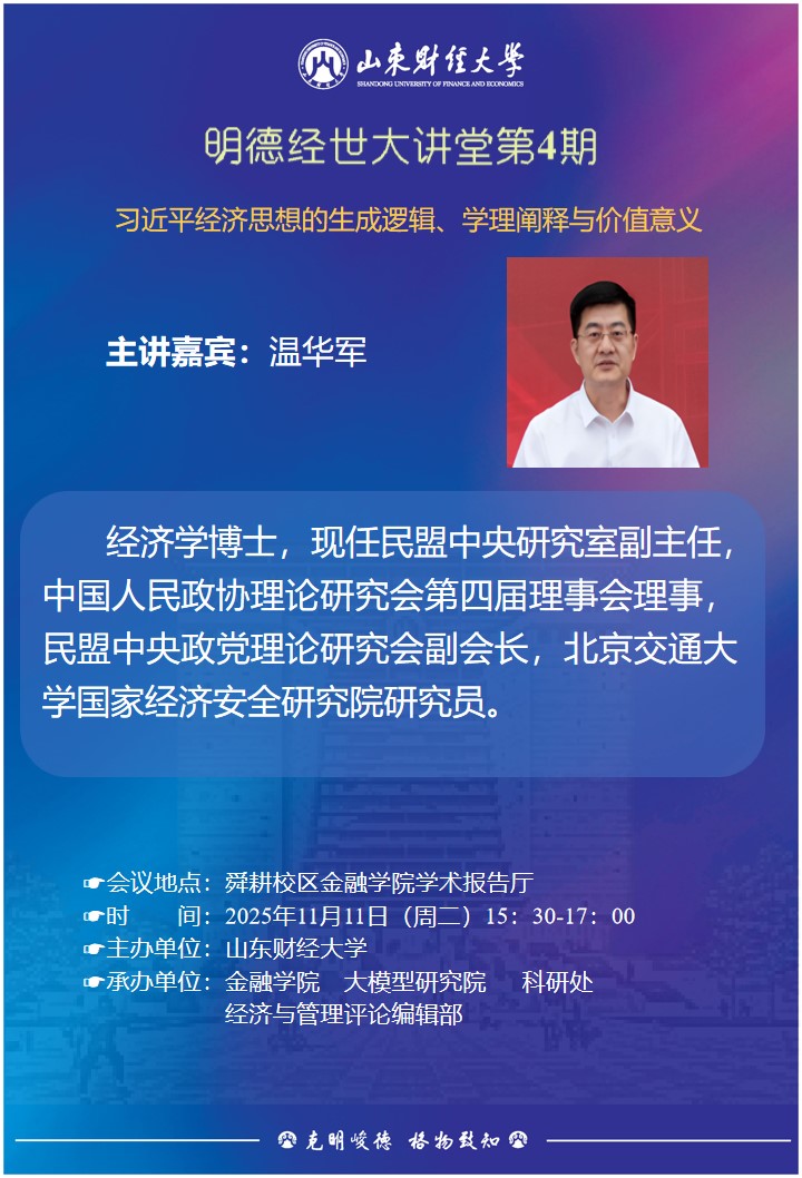明德经世大讲堂第4期:习近平经济思想的生成逻辑、学理阐释与价值意义