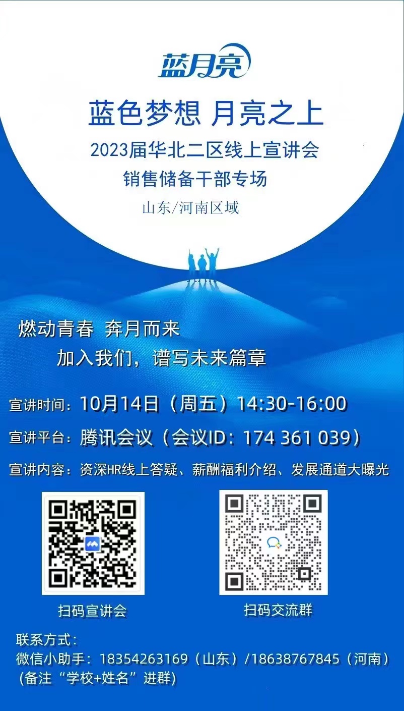 蓝月亮2023届销售储备干部(山东/河南)秋季校园招聘全面启动!