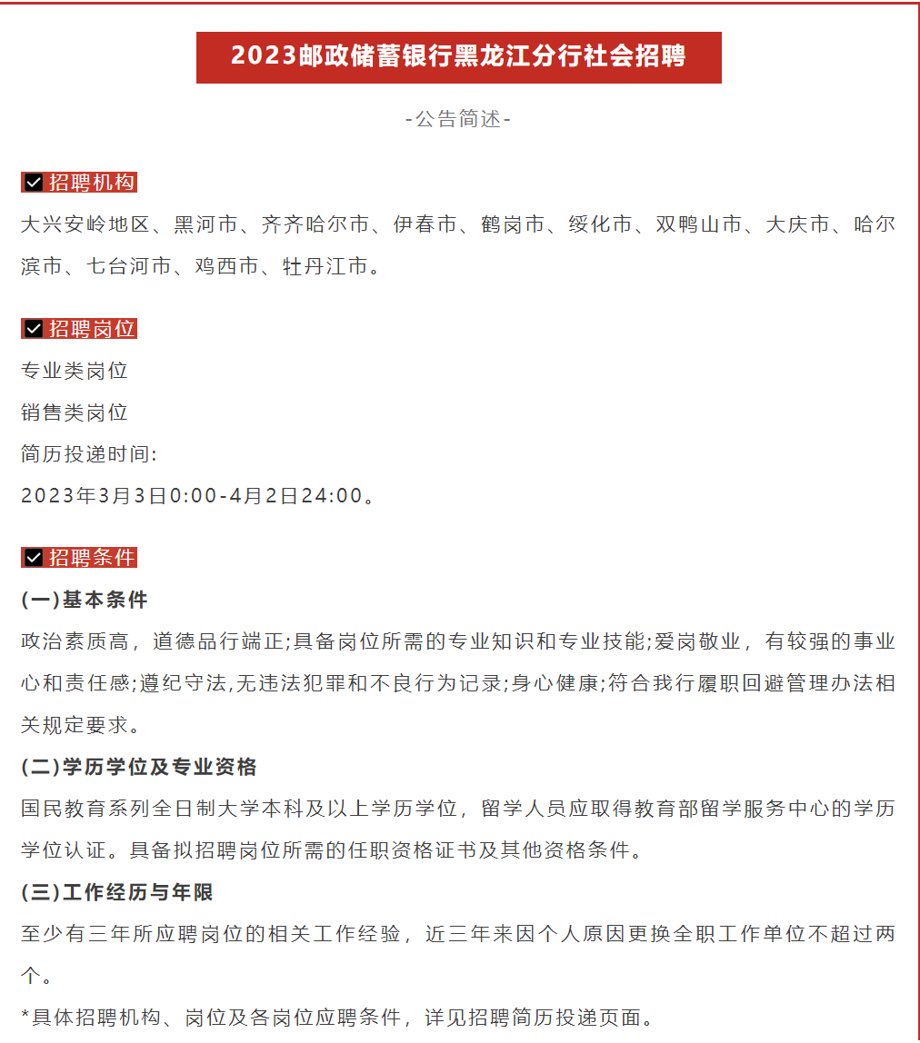 八险二金!2023邮储银行面向社会招聘若干人!待遇丰厚!