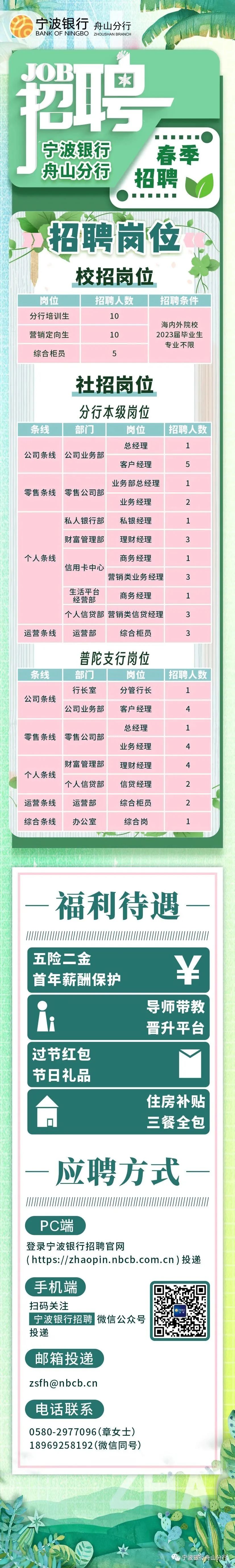 宁波银行舟山分行2023年春季招聘公告