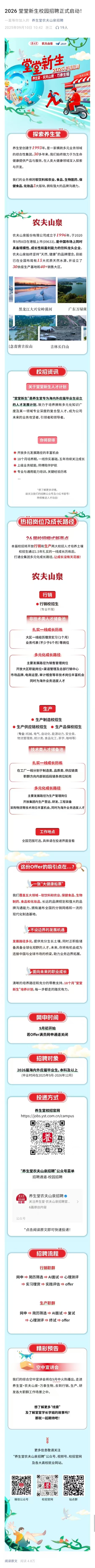 养生堂农夫山泉2026届校招正式启动