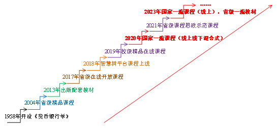该课程始于1958年开设的《货币银行学》,2004年获得省级精品课程,历经几代人的努力,不断对课程进行建设和完善。经过长期建设与积累,2013年出版自主编写的配套教材;2017年获得省级在线开放课程认定;2018年建设完成在线课程并在智慧树平台上线;2019年获得校级精品在线开放课程认定,并开展线上线下混合式教学改革;2020年获得首批线上线下混合式国家一流课程认定;2021年开展课程思政建设,并获得山东省课程思政示范课程认定;2023年获得国家级线上一流课程认定,同年,根据“新文科”建设要求,修订了配套教材,并获得省级一流教材。课程建设取得良好成效。