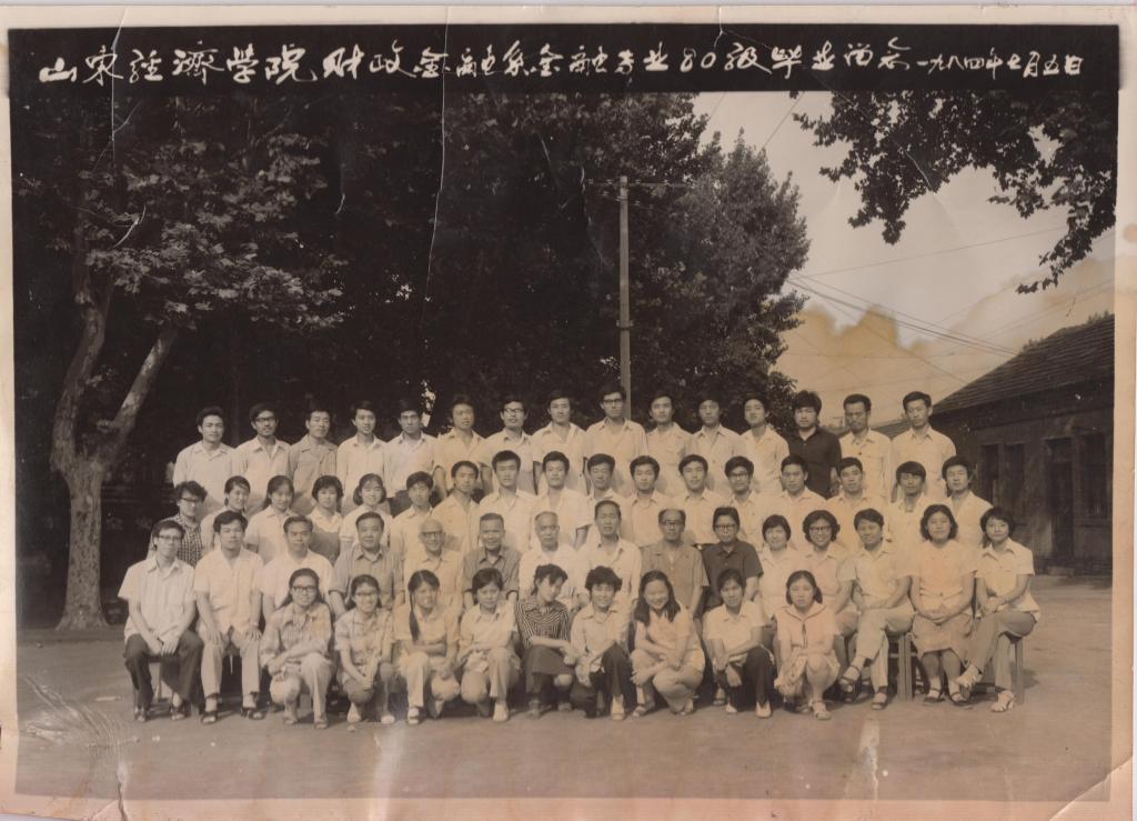 1984年6月,山东经济学院财政金融系金融专业80级学生师生毕业合影(二排左起第七位时任财金系主任曹珂,第八位副主任王玉瑞)