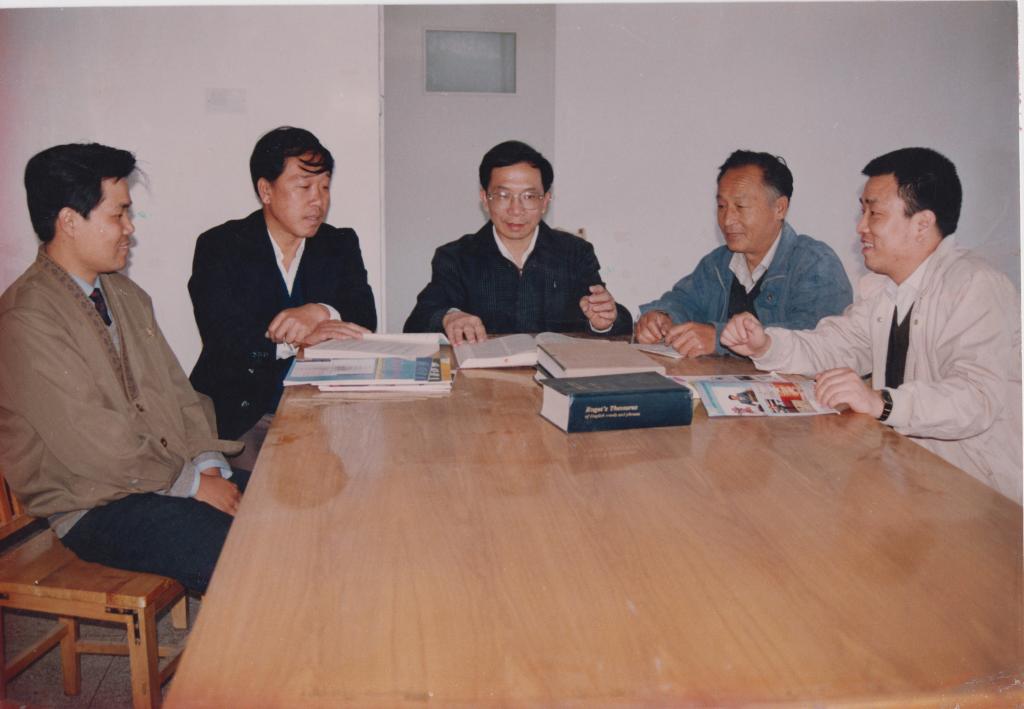 1993年4月,山东财政学院投资经济系各教研室主任1993(从左至右:刘瑞波、毕建洲、陈文思、戴显砥、黄磊)