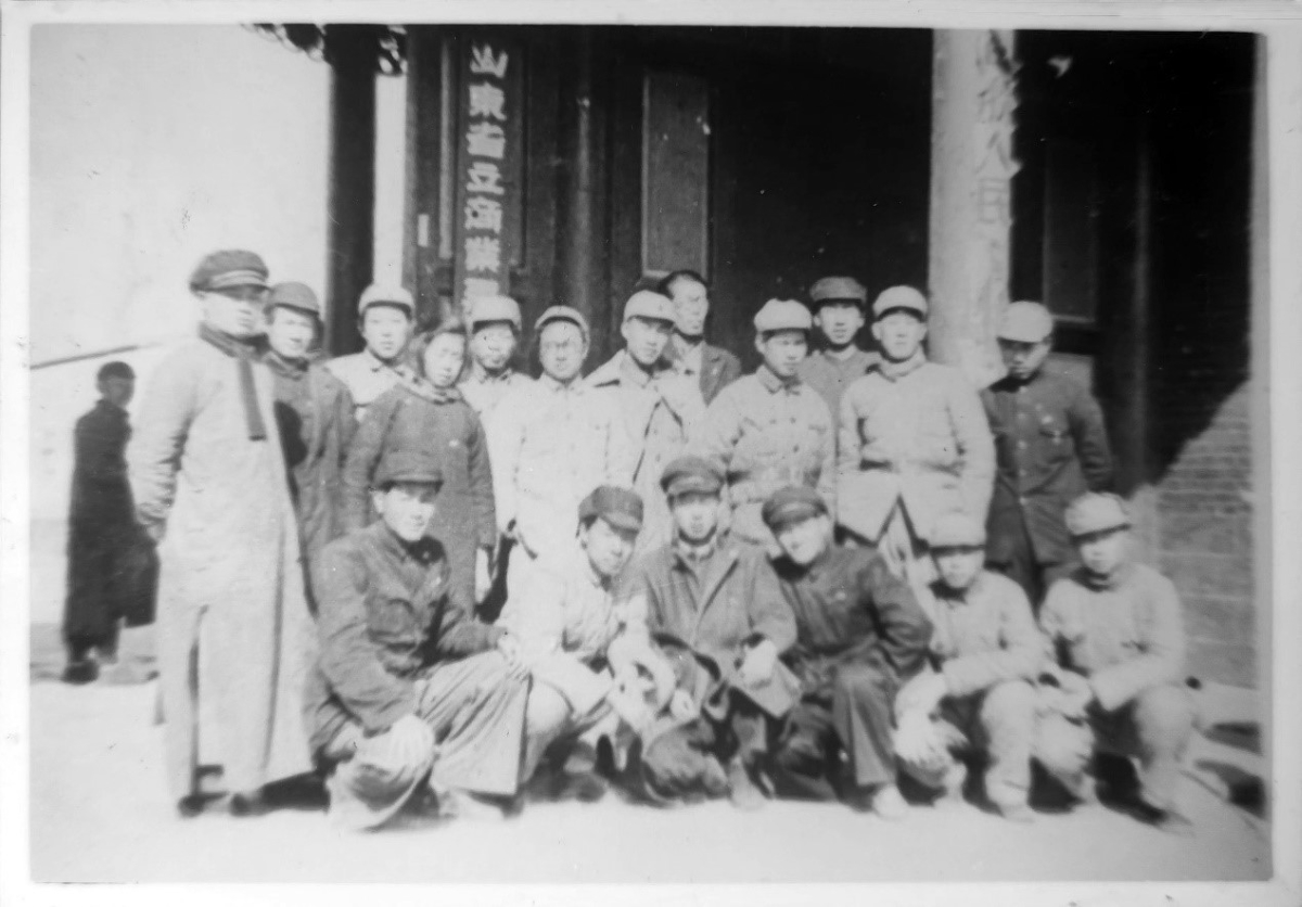 1949年2月,山东省立商业专门学校银行系同学在校门口合影